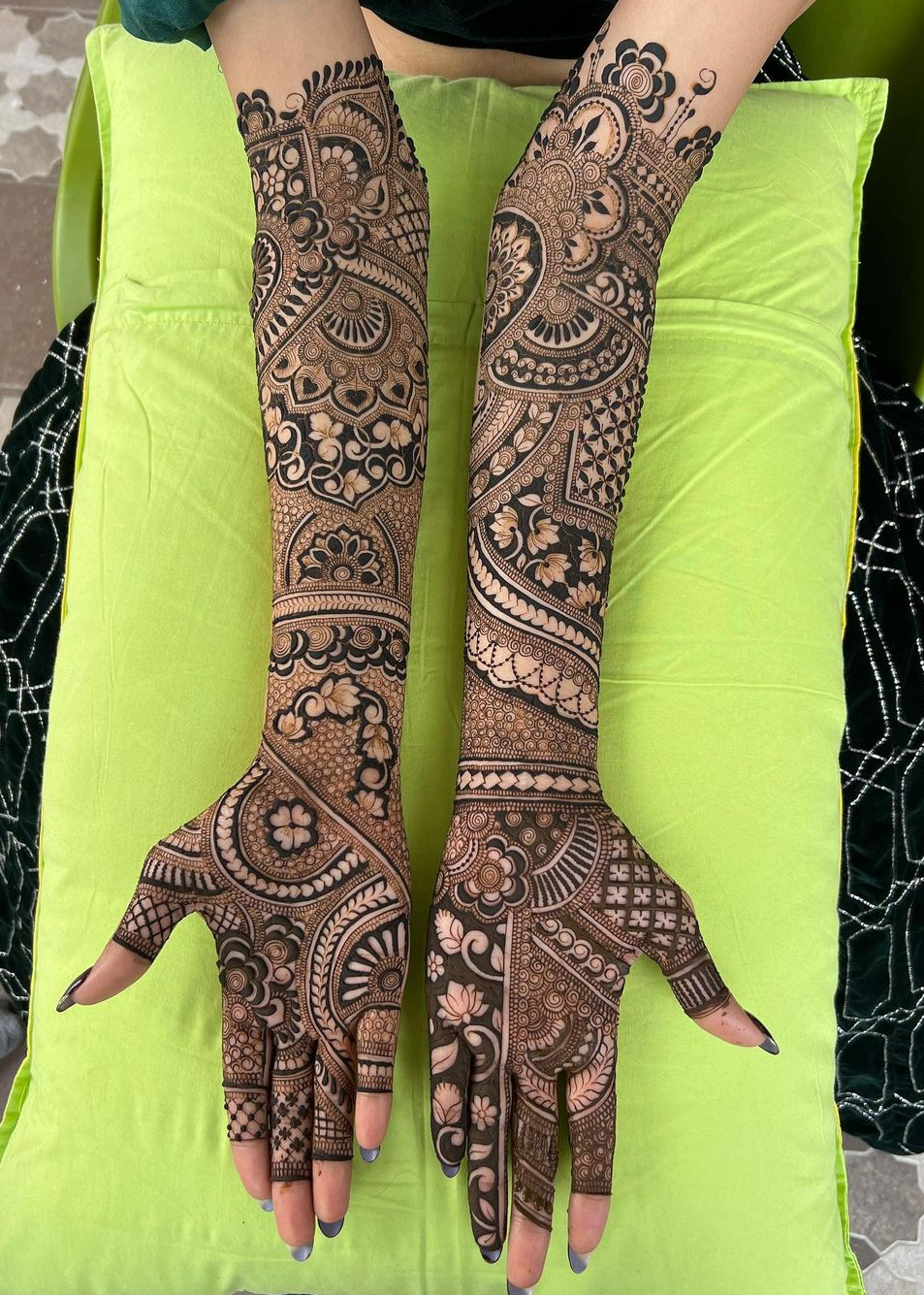 Aman Mehandi Artist makes sure to use good quality henna paste that is made fresh and used immediately, resulting in a better color and longer-lasting mehndi design. A good quality henna paste is essential for a flawless and beautiful bridal mehndi design. It ensures that the bride's skin is not harmed, the mehndi design is rich and vibrant, and the mehndi artist can work with ease and precision. Every bride is unique and has her personality and preferences so a professional bridal mehndi artist like Aman Mehandi Artist offers a variety of designs to choose from like Bridal Mehendi, Rajasthani Mehendi, Arabian mehndi at good prices.