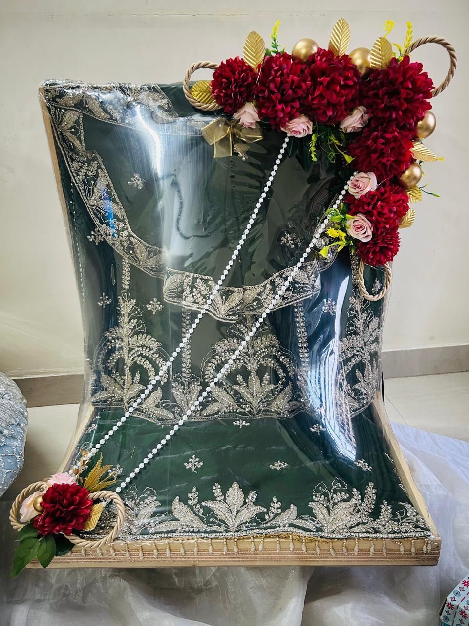 Baskets for Hampers, Sagan Envelopes, Boxes, Saree Bags, Trousseau Trunks, Floral or Gota Jewellery