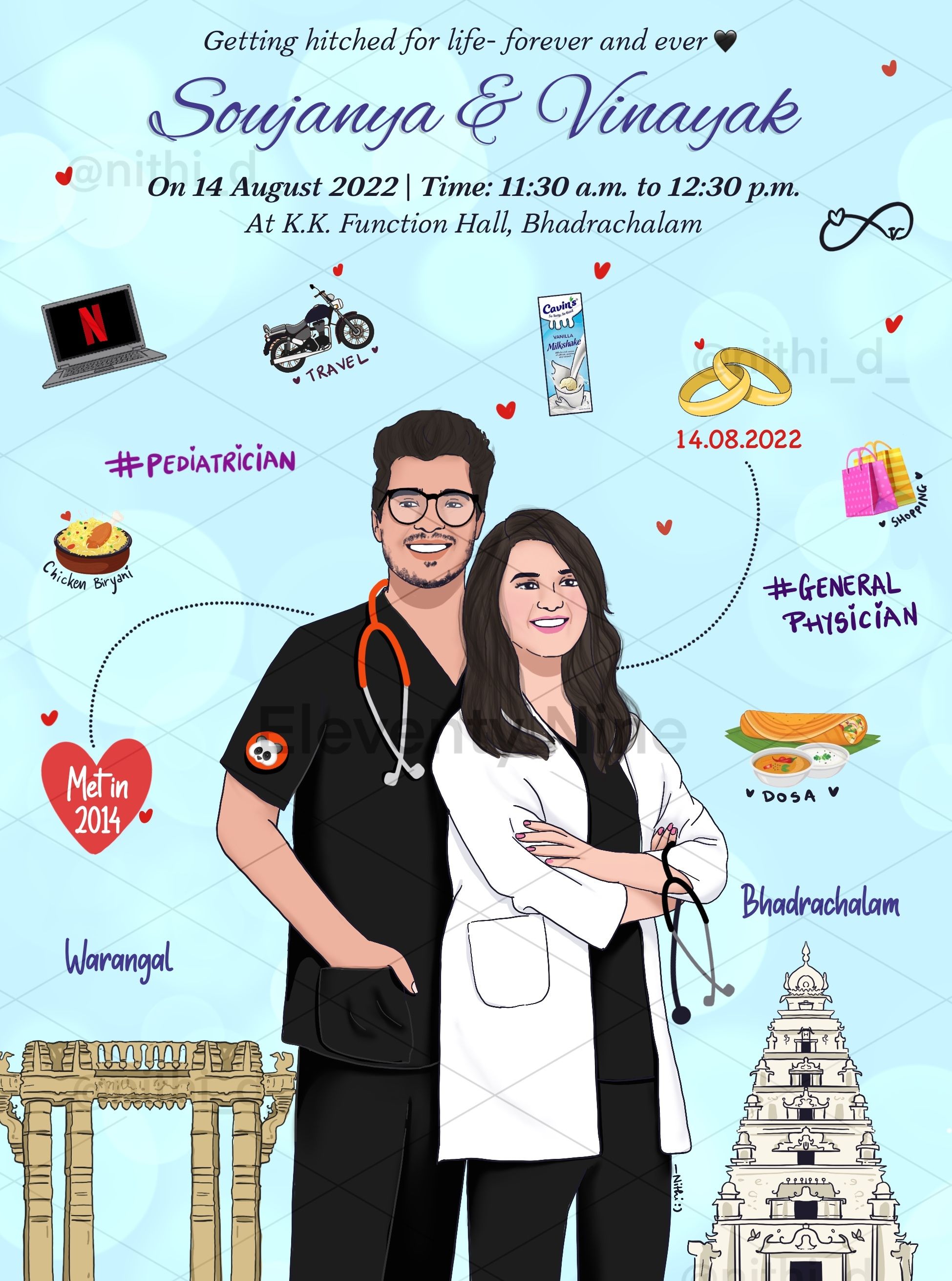Eleventy Nine by Nithi D, which is based in Nagpur, provides a selection of wedding invitations for you and your family and assists you in making a wedding card that will appear welcoming both inside and out. They have a selection that can be utilised for all of your events and occasions, whether they are big or small. Eleventy Nine by Nithi D specialises in creating various wedding invitations and works to provide you with the best invitations possible. You can select the colour, print, and display options that you want for your bug function.