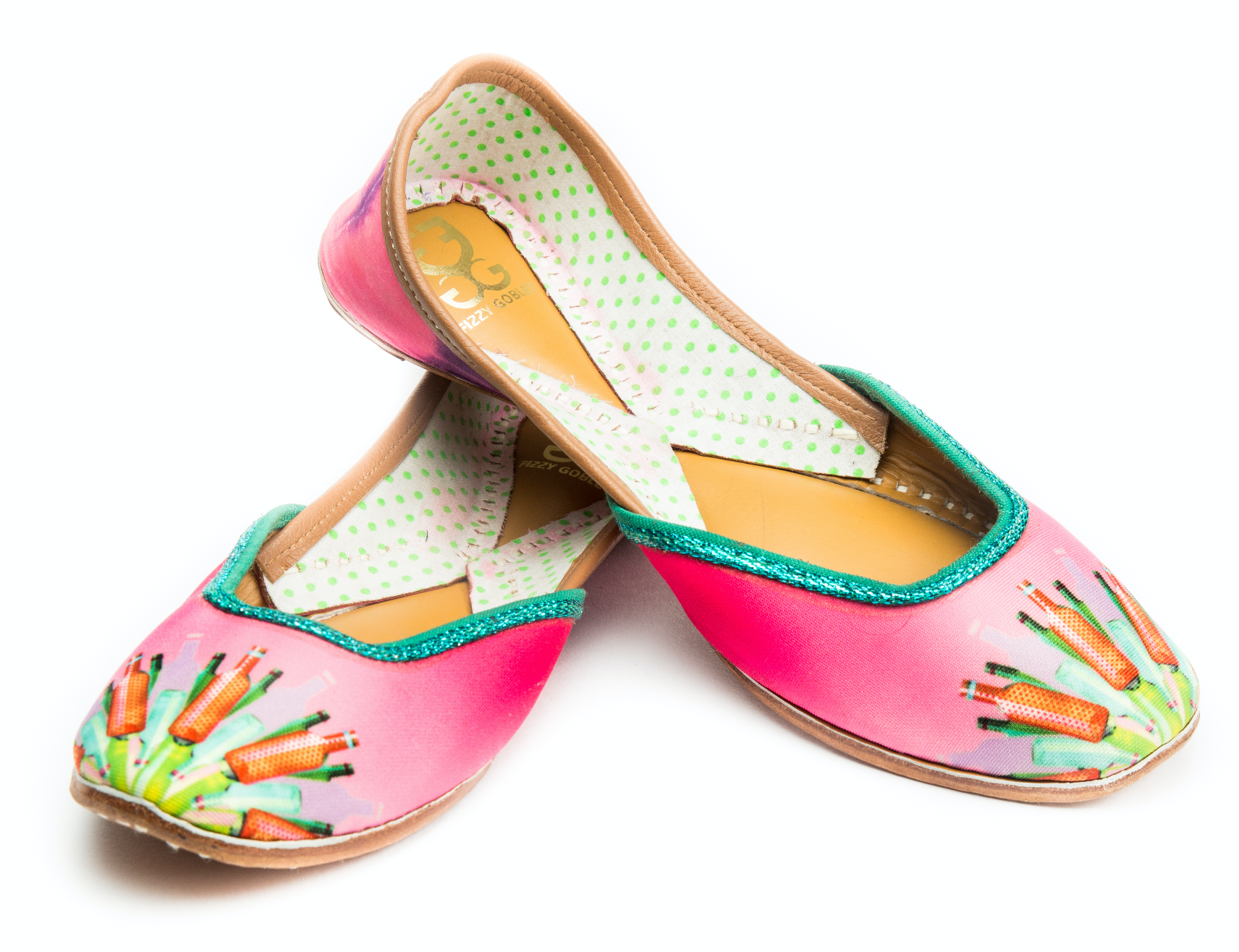 Sometimes with a twist in traditional footwear or fusion with funky trends, elegant ethnic, seasonal or playful themes, Fizzy Goblet has got everything to serve you with gorgeous artstic ideas and creative craftsmanship. They have your every pair of jutti ready to serve comfoert to your feet and elegant to your look for every special occasion. Fizzy Goblet is even loved by celebrities all over. They have their best of options to serve you and thus their specialization list includes: