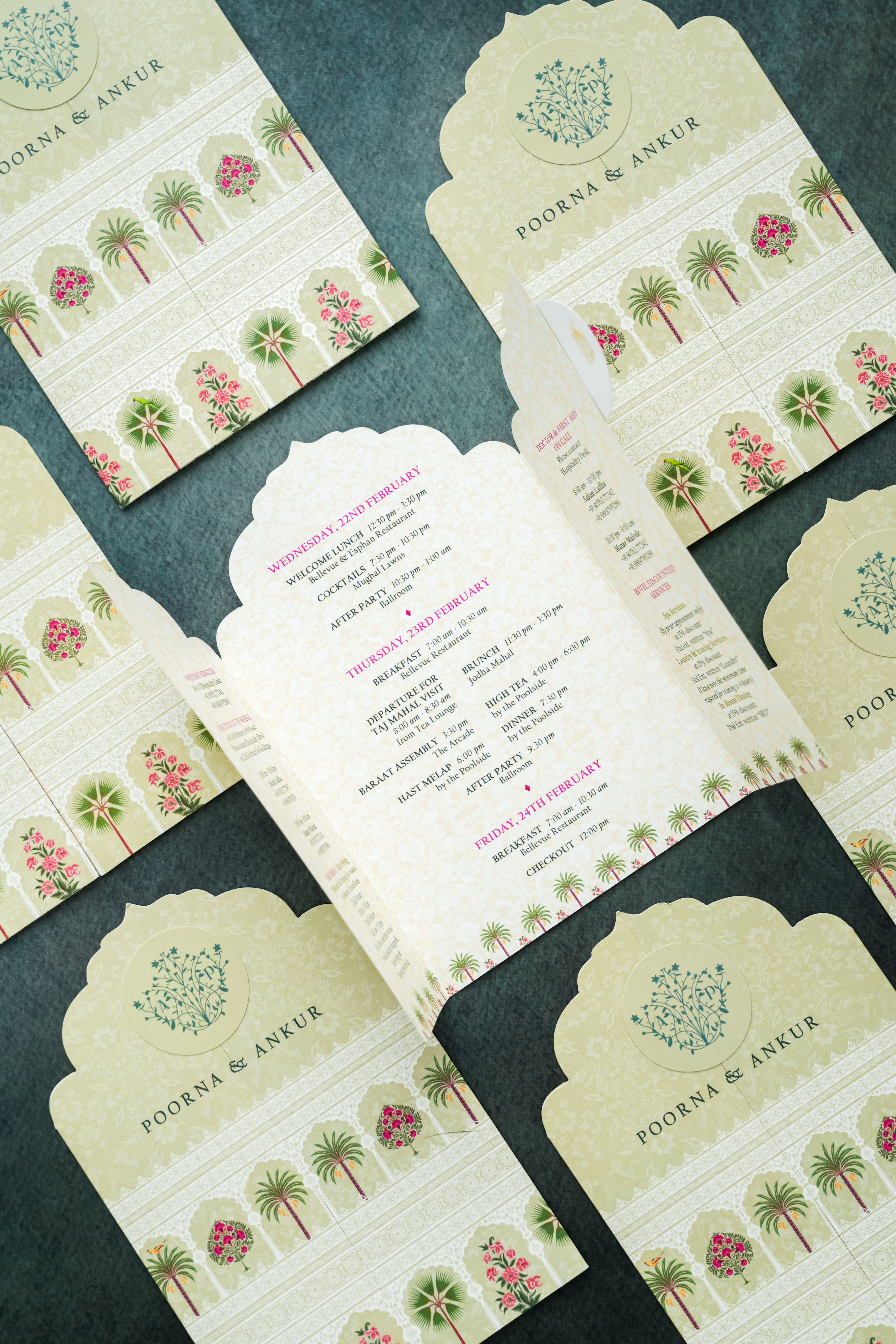 They offer a diverse range of products to enhance your wedding experience. Their wedding cards are meticulously crafted with attention to detail, capturing the essence of your love story. They also provide stunning posters to adorn your wedding venue, thank you cards to express gratitude to your loved ones, easel designs for a touch of elegance, and unique return gifts to leave a lasting impression on your guests. If you prioritize sustainability, they have a collection of eco-friendly paper invites that combine beauty with environmental consciousness. Additionally, they specialize in creating caricature and themed-based designs for sangeet, mehndi, cocktail, puja, wedding, and reception ceremonies, ensuring a cohesive and memorable aesthetic throughout your wedding celebrations.