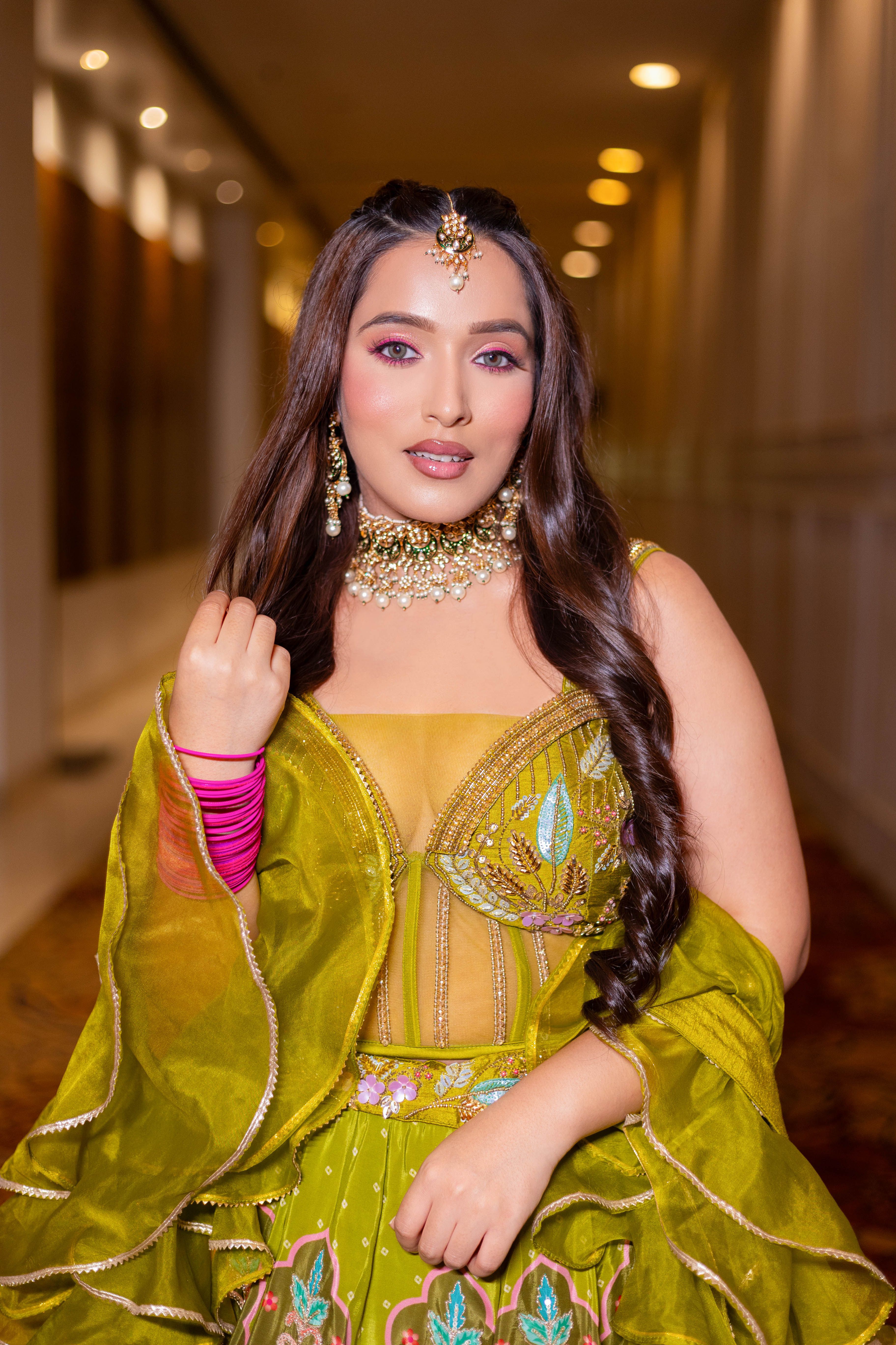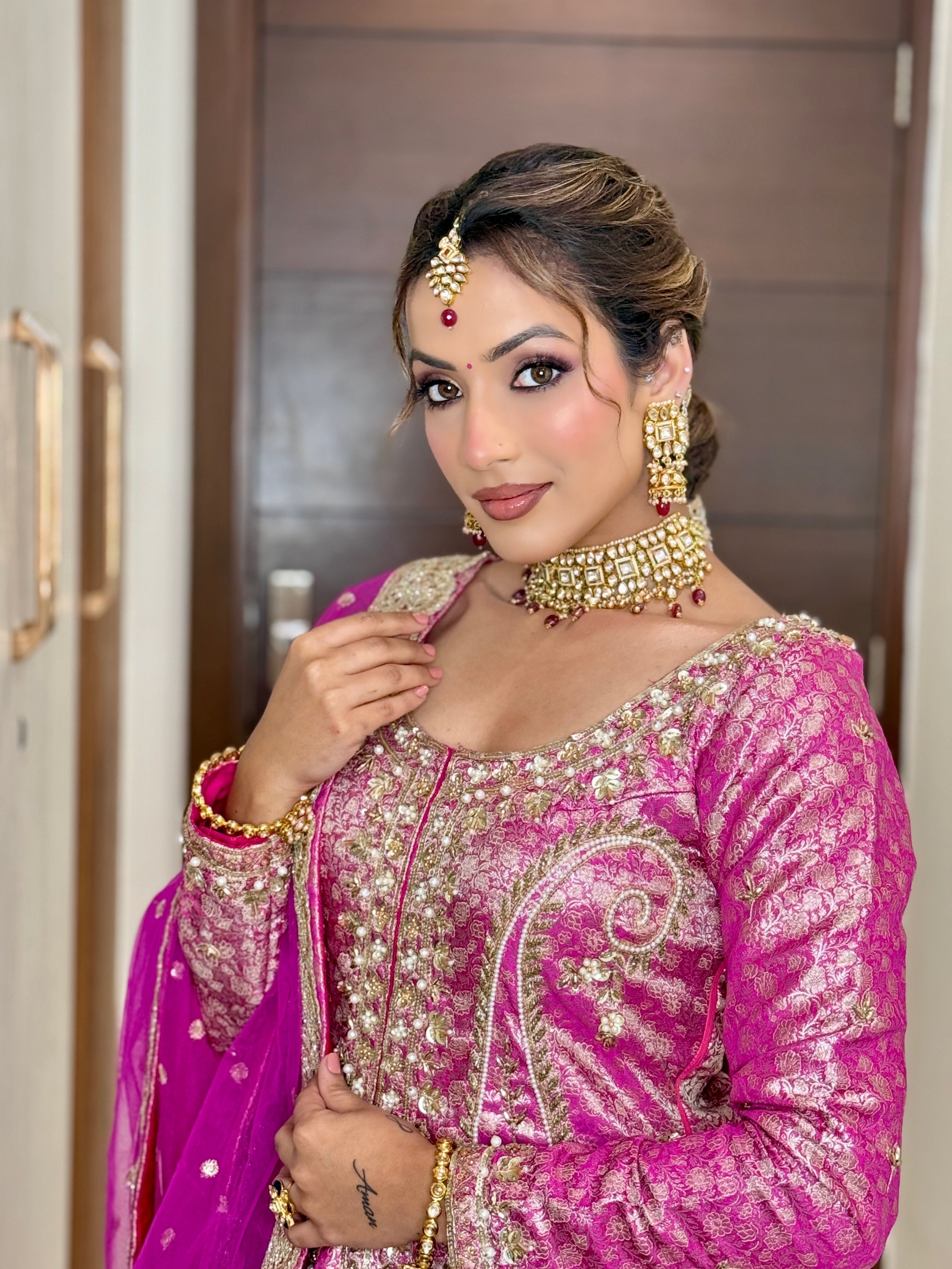 She uses latest techniques and high-end quality products like MAC, Huda Beauty, Sephora, etc. for bridal make up.