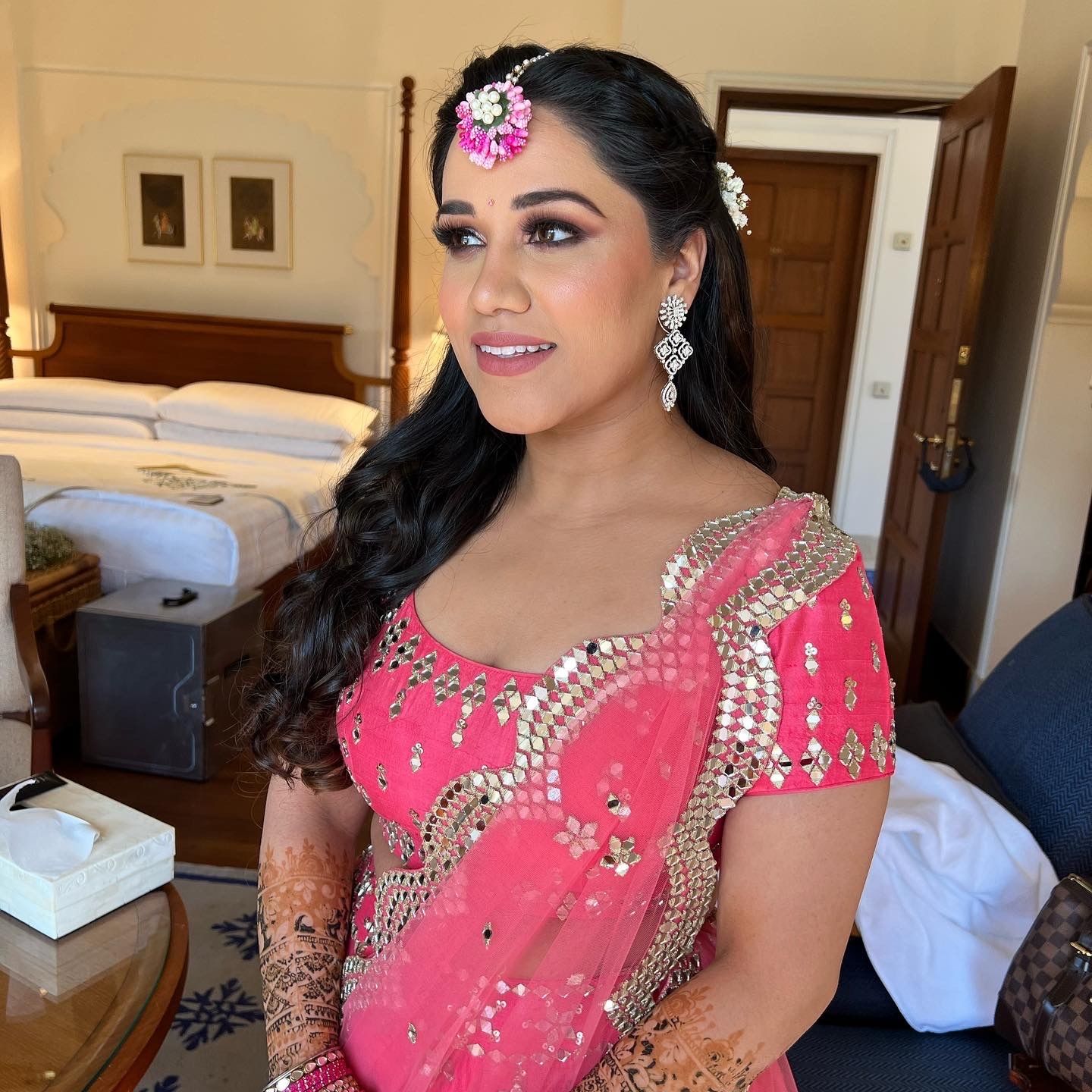 Sakshi Sagar and her team are flexible and travel to the venue of the client. They also travel outstation to doll up the brides. This makes her a great bridal makeup artist in case you are planning on hosting a destination wedding.