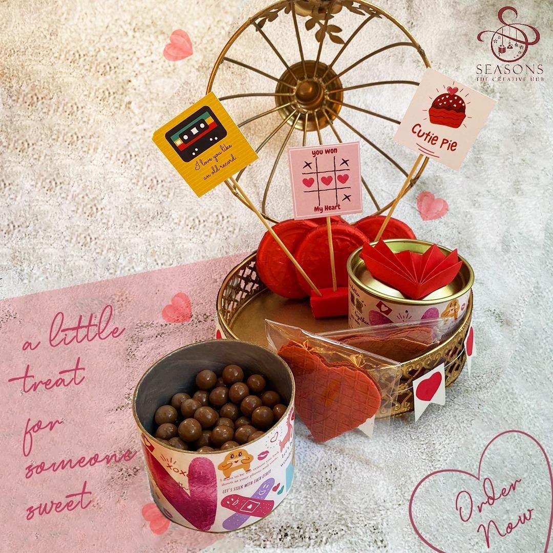 Seasons- The Creative Hub deals in the following favors' categories: Chocolates, Cookies and Biscuits, Cake in a Jar, Cupcakes etc, Mehendi Favors, Luxury Gifting, Edible, Gift Baskets.