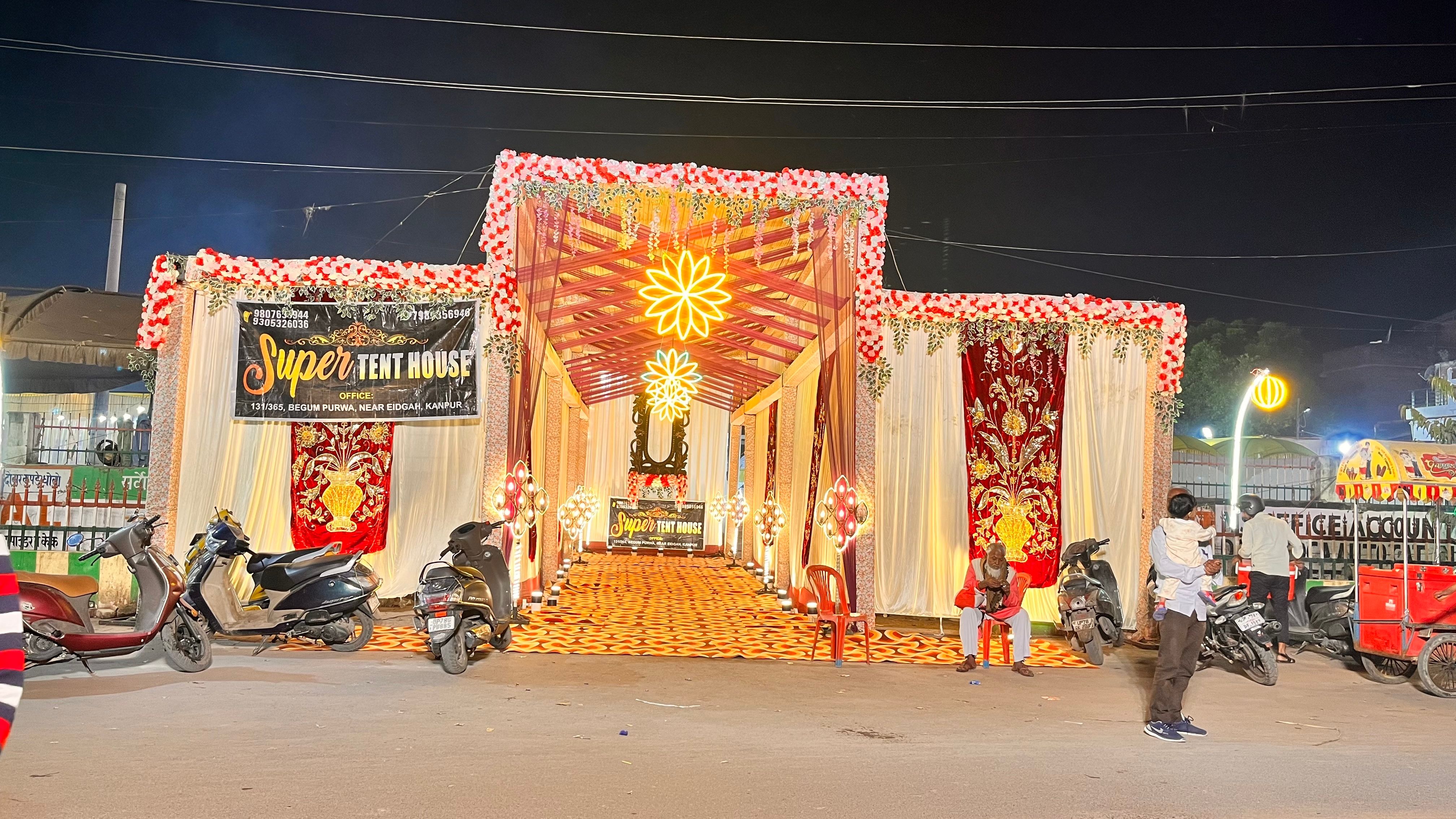 Super Tent House is a Kanpur-based wedding decor company. A wedding is the most opulent and valuable day in a couple's life, and it deserves the best arrangements. The most important aspect of wedding planning is the decoration, as beautiful surroundings draw everyone's attention and make your wedding a huge success. So, if you want the most exquisite wedding decor for your wedding day, Super Tent House is the company to go with. The professional team provides the best services and packages ranging from floral decor to stage decor.
