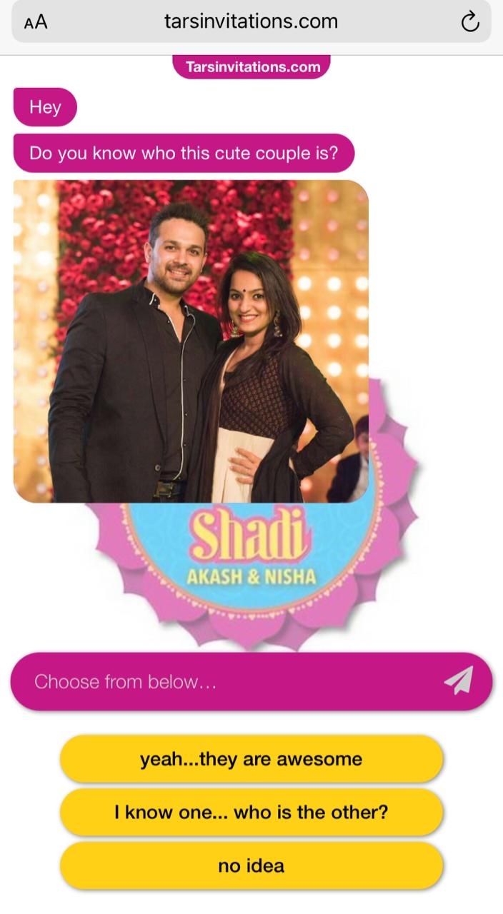 It is an automated, chat style wedding invite which feels like someone is personally inviting you on a messaging app and sharing all the details about it.