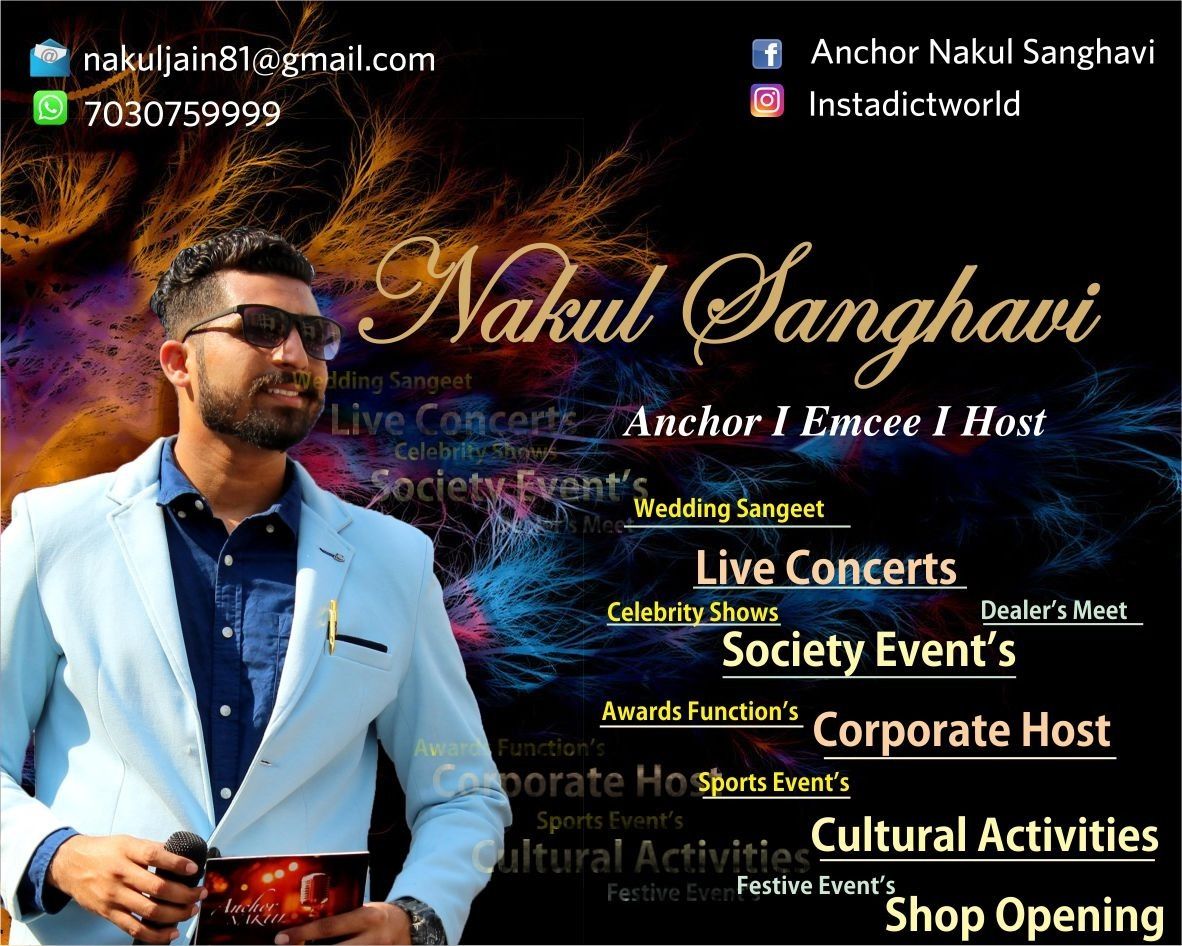 Anchor Nakul Sanghavi performs at Pre-Wedding (Roka) , Wedding , Sagan, Cocktail Party, Bachelor/ Spinster Party, Private Party