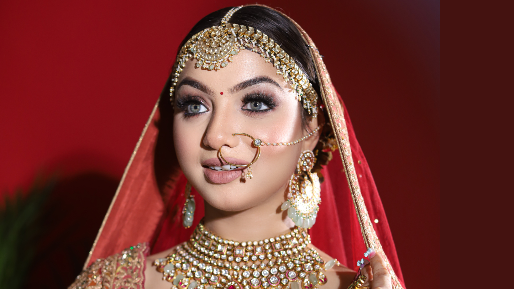 Makeup is the medium that makeup artists use to create their looks. Something that has the potential to propel them to new heights while also putting their lives in danger. As a result, wedding makeup artists must be adept at applying makeup. The products should enhance the bride's features while emphasizing her uniqueness and simplicity. During her makeover, she used a variety of cosmetics like Huda beauty, Bobbi brown, PAC, Mac, Makeup studio, Morphe, Smashbox, Estee Lauder, makeup forever, forever 52, kryolan,Milani, LA girl, my glam by Manish Malhotra , Temptu.