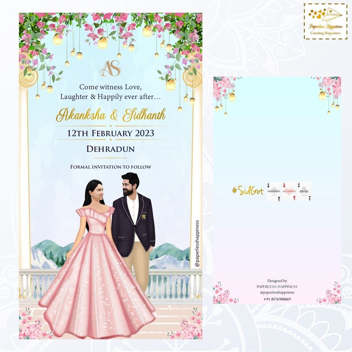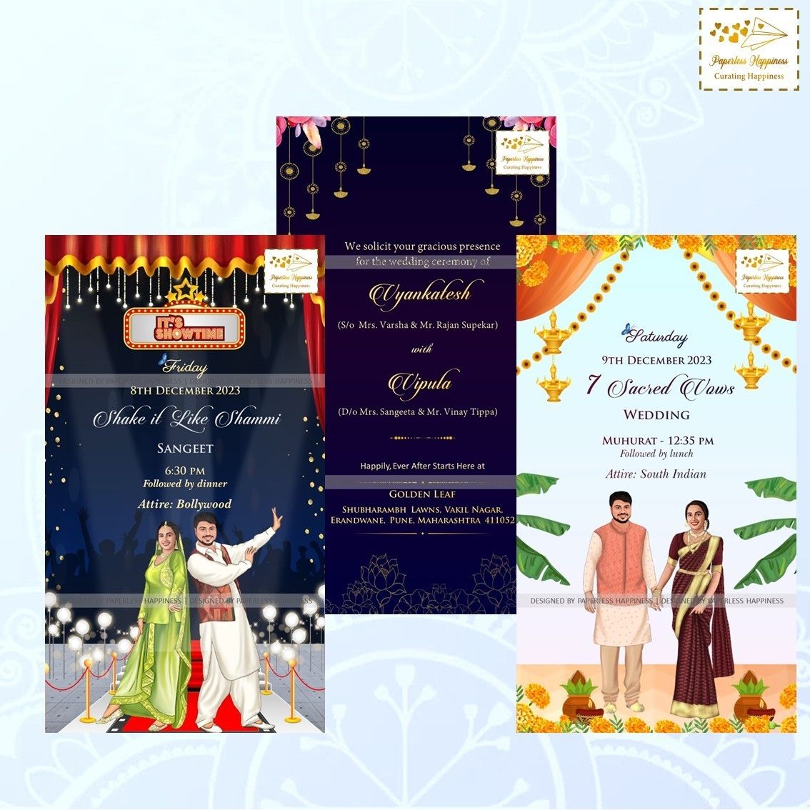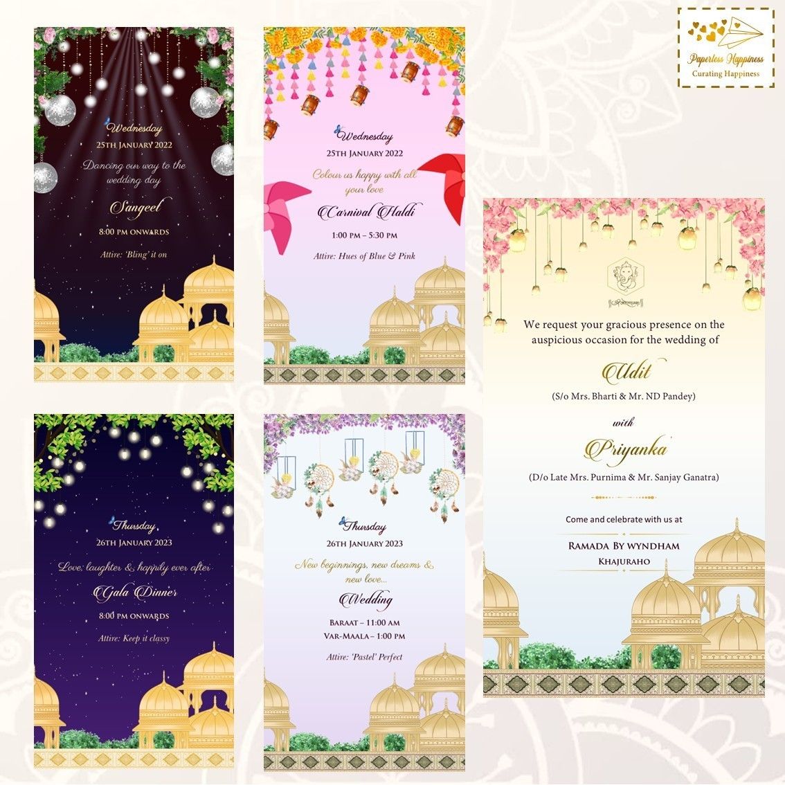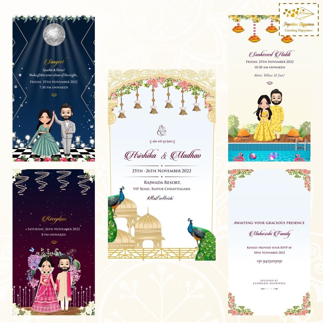Paperless Happiness specialises in creating wedding invites while paying particular attention to the needs and specifications of the customer in order to produce the desired results. All of our clients adore and greatly value the work we do. Modern & digital invites are our specialty at Paperless Happiness. Numerous unique, vibrant, and colourful wedding cards are available from Paperless Happiness, along with other related products and designs like Modern E-Invite, Digital E-Cards, and Customized Invites.