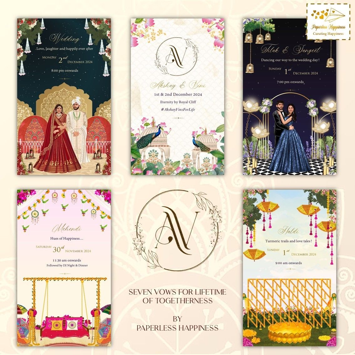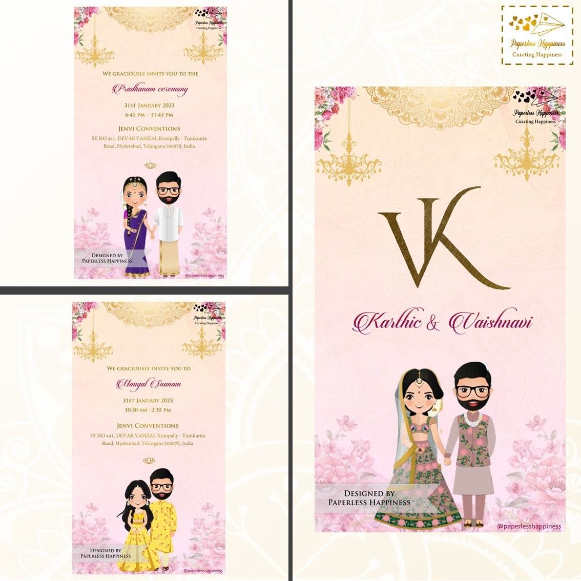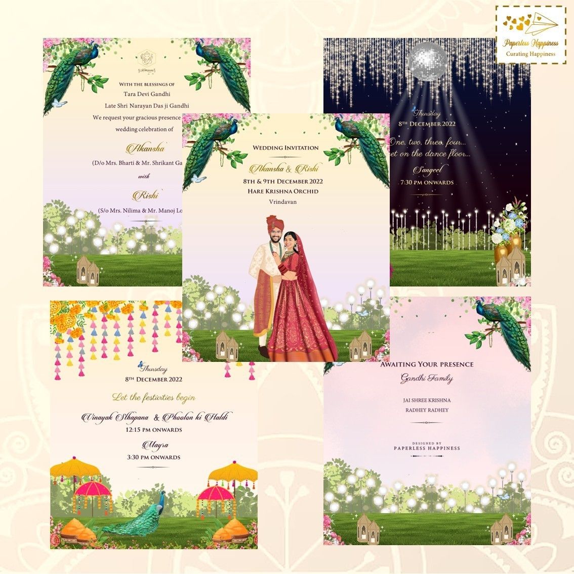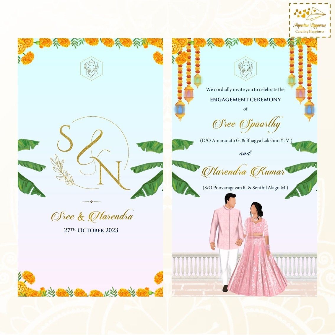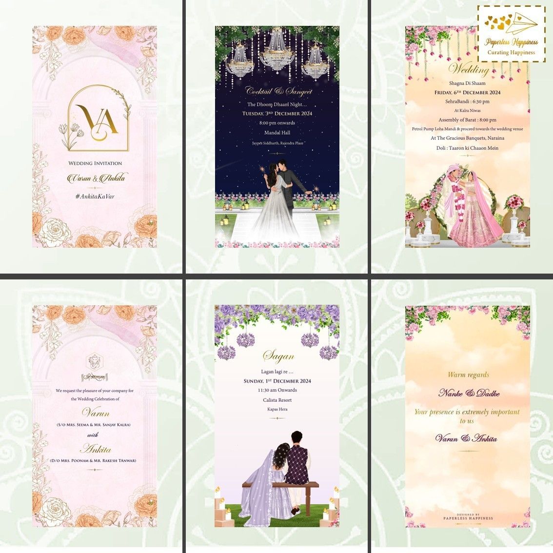 Paperless Happiness specialises in creating wedding invites while paying particular attention to the needs and specifications of the customer in order to produce the desired results. All of our clients adore and greatly value the work we do. Modern & digital invites are our specialty at Paperless Happiness. Numerous unique, vibrant, and colourful wedding cards are available from Paperless Happiness, along with other related products and designs like Modern E-Invite, Digital E-Cards, and Customized Invites.