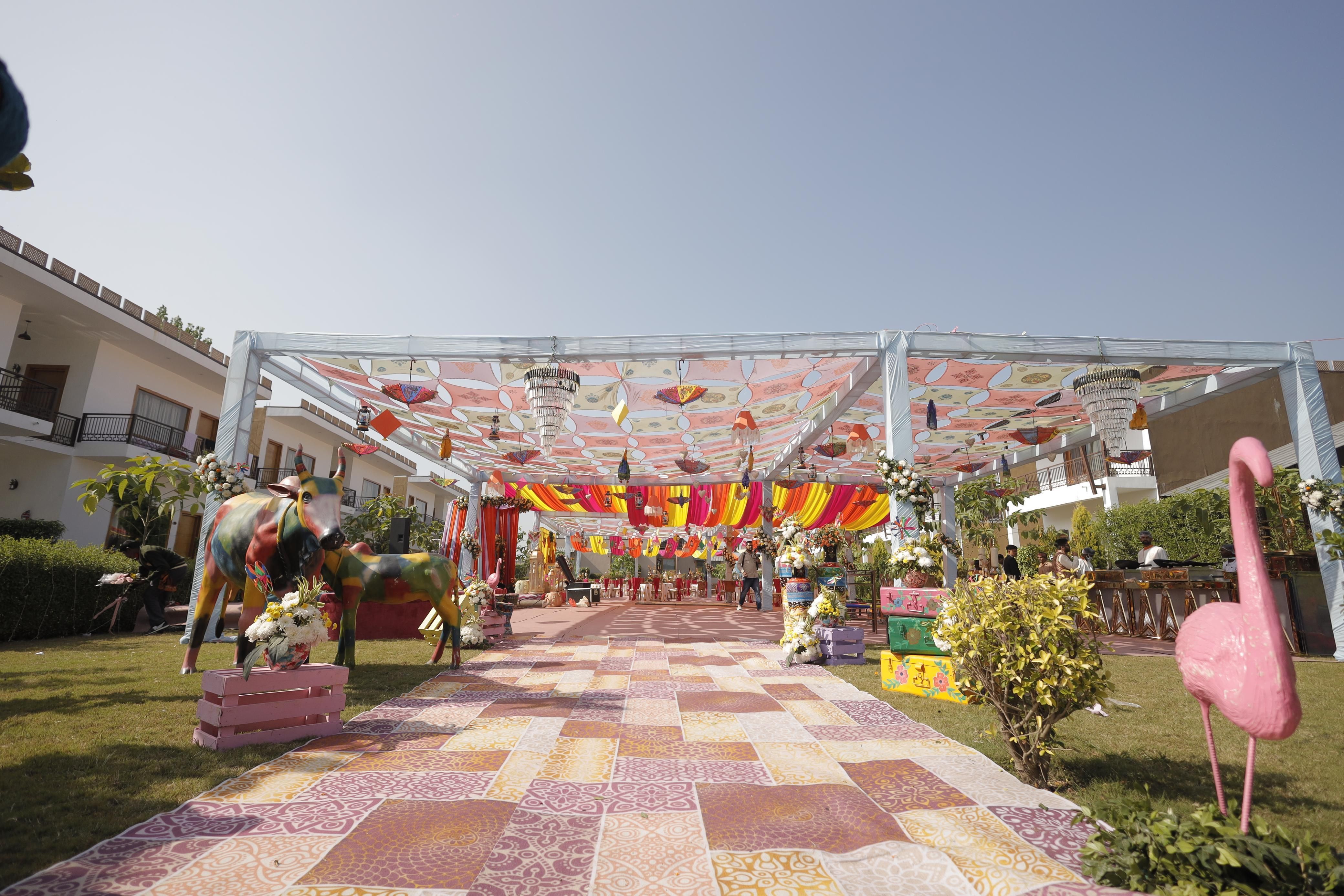 The Woods : An Orchard Retreat by Royal Majestic Hospitality is a beautiful resort located amidst the city of Rishikesh in Dehradun and is a popular wedding venue in the city offering the perfect backdrop for all kinds of wedding functions and other celebrations. With its picturesque setting and premium amenities, it is a great choice for those looking for a stunning and unforgettable wedding experience.